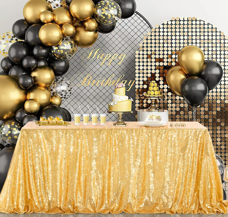 Grande nappe rectangulaire à paillettes dorées